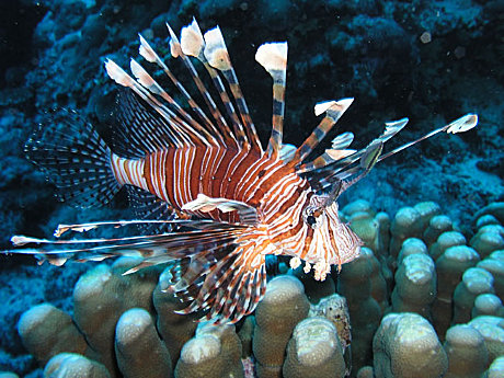 Tuesday: Today we dive Steve’s Bommie, on Ribbon Reef # 3. This is an isolated pinnacle that rises from 100 feet at its base to around 15 feet from the surface. Colourful antheas and a vast array of fish cover this bommie, while big eye trevally and barracuda hang out in the blue. Look for nudibranch and stonefish. Today we may also dive the Clam Gardens, where giant clams up to three feet across will amaze you. Some of our other favourite sites in this area of the Ribbons include Flare Point and the beautiful Gorgonia Wall.