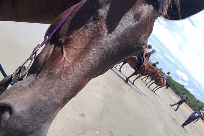 Enjoy the breathtaking Cape Tribulation scenery as you meander your way through the oldest living rainforest in the world, until you reach the spectacular Myall Beach, where we love to get the horse's into the water.